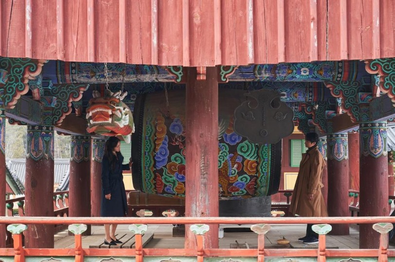 瑞莱在影片里有数的几个欢喜情节,要么是在警局若有若无地引诱海俊,要么是在他的单身宿舍翻他的东西,看他给自己做饭,要么就是一起在雨中逛寺庙,在他随身的十八个兜里东摸西摸,绝少在海边徜徉。